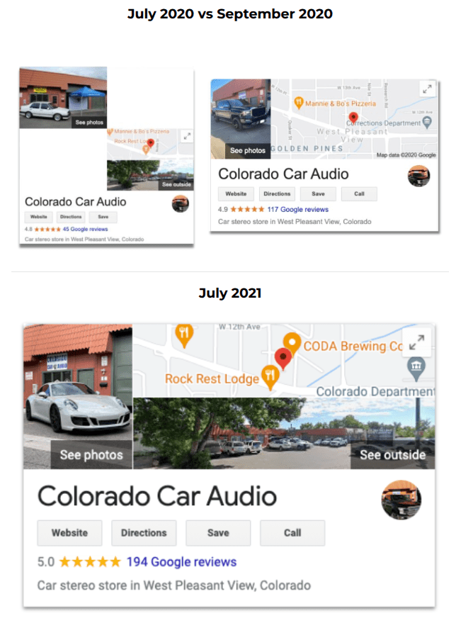 This custom car audio company had hundreds of past clients who were never asked to leave a Review. Once we deployed ReviewLead their numbers exploded!